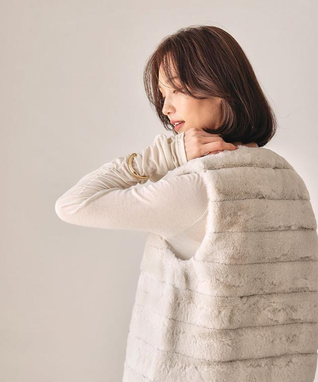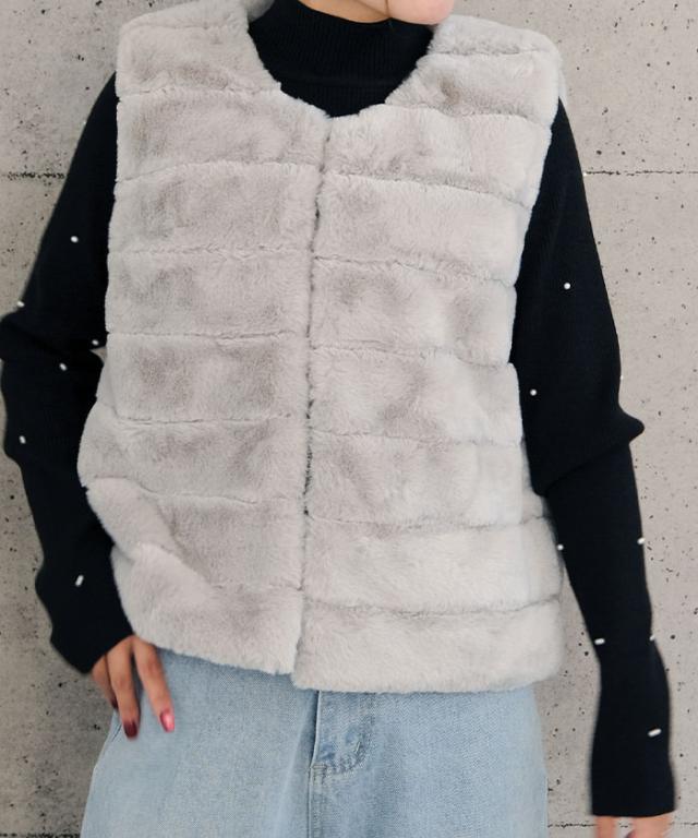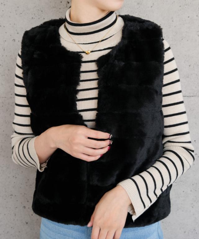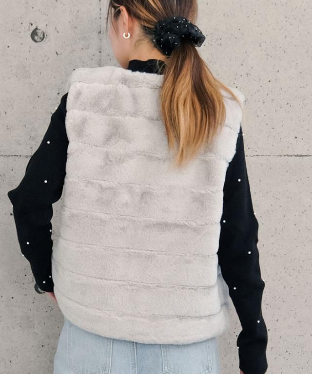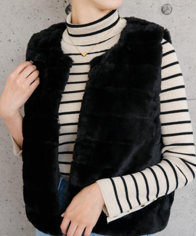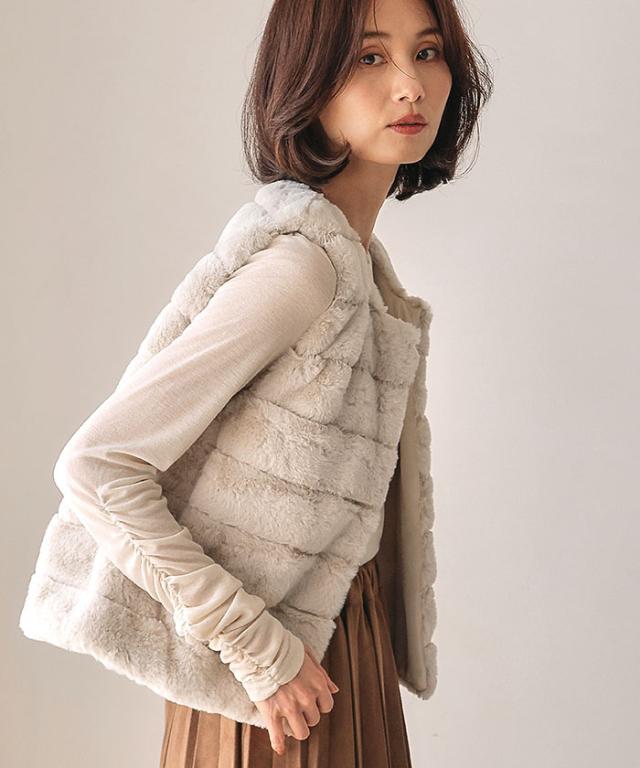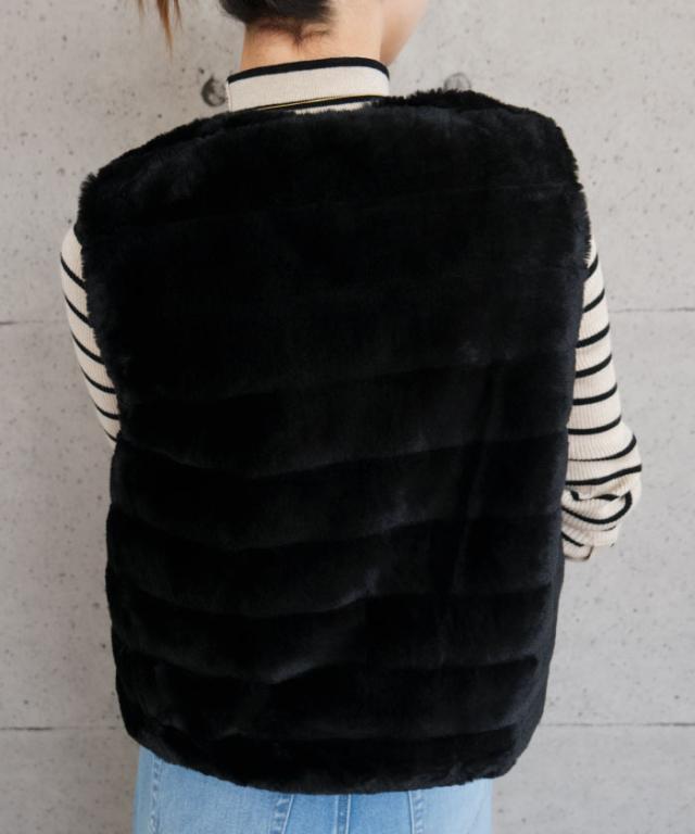 ふんわりと暖かい、なめらかな手触りのフェイクファーベスト