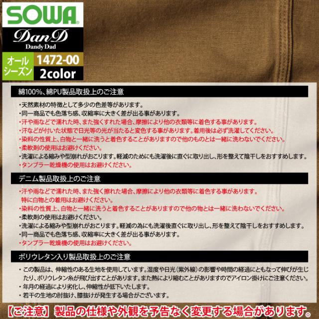 桑和 SOWA 作業服 1472-00 長袖カバーオール S-LL オールシーズン