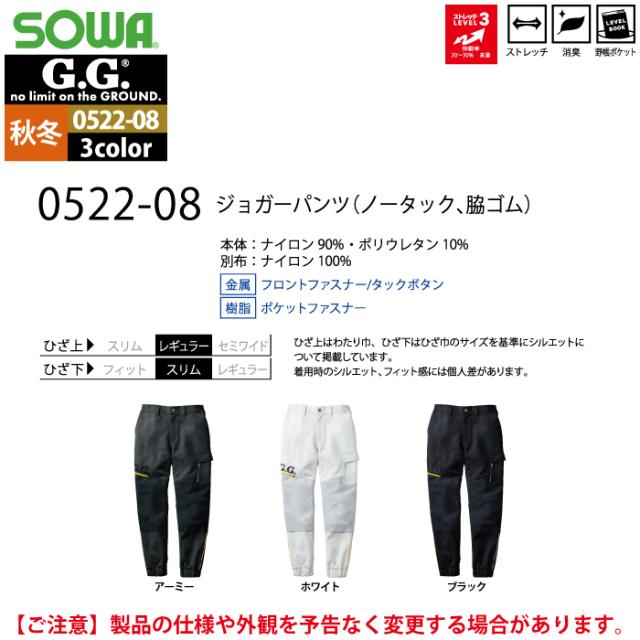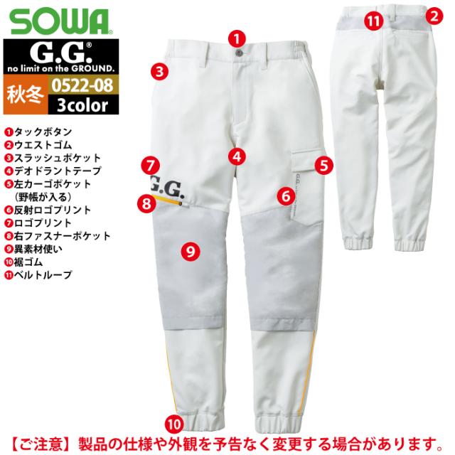 桑和 SOWA 作業服 作業ズボン 0522-08 ジョガーパンツ 4L 秋冬用