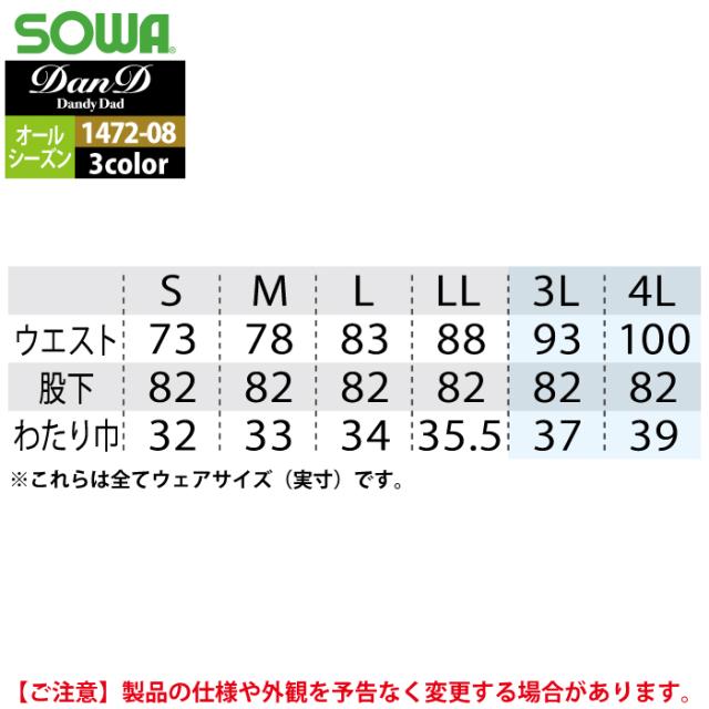 桑和 SOWA 作業服 作業ズボン 1472-08 カーゴパンツ(ノータック) S-LL オールシーズン