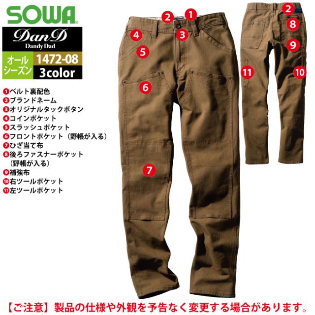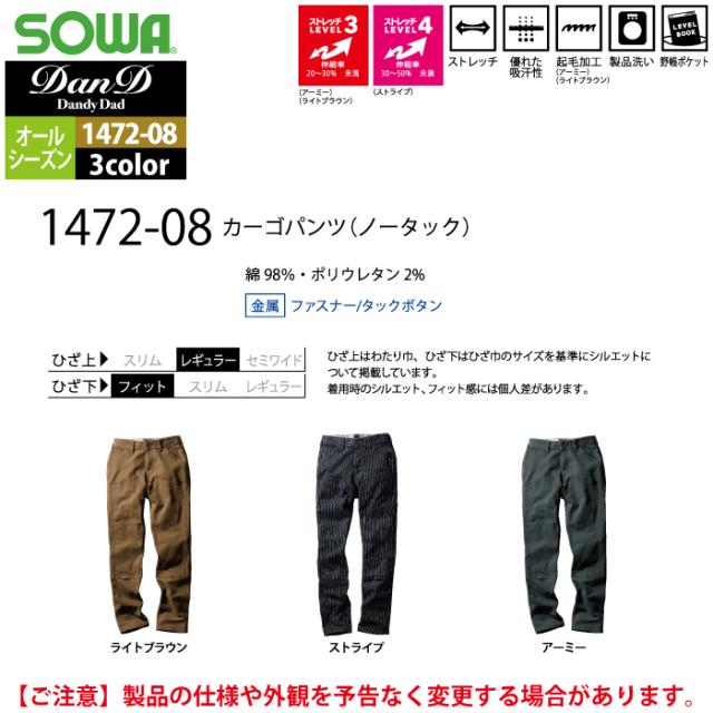 桑和 SOWA 作業服 作業ズボン 1472-08 カーゴパンツ(ノータック) 4L オールシーズン