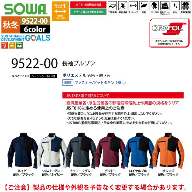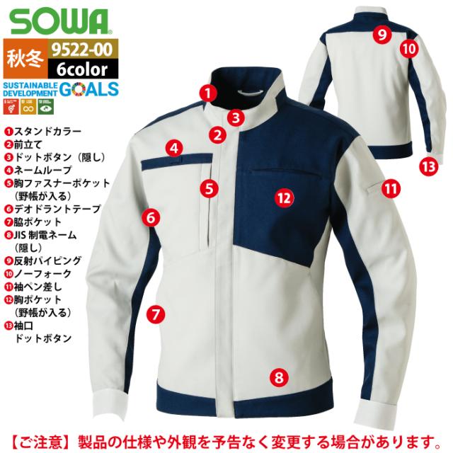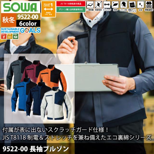 桑和 SOWA 作業服 9522-00 長袖ブルゾン 8L 秋冬用