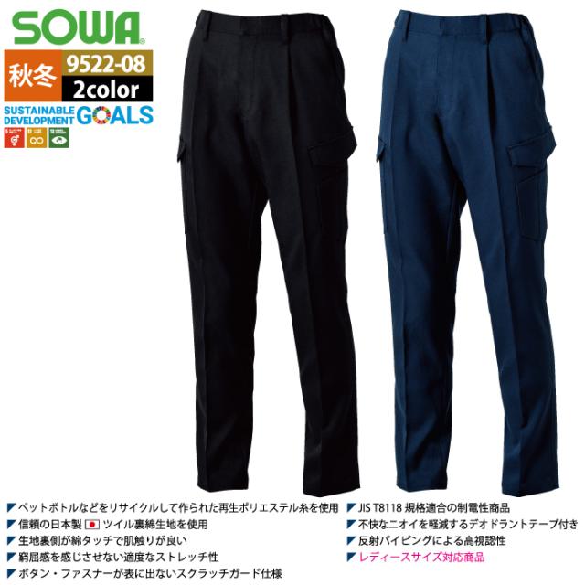 桑和 SOWA 作業服 作業ズボン 9522-08 カーゴパンツ 6L 秋冬用
