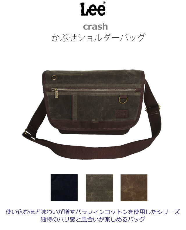 ショルダーバッグ メンズ 斜めがけ Lee リー crash パラフィン加工 ヨコ型 ショルダーバッグ 320-4032 A5サイズ バッグ メンズバッグ 斜め掛け 横型 男性 ショルダーバック 黒 カーキ 茶 かっこいい 小さめ ミニ 大人 父の日 敬老の日 お誕生日 クリスマス プレゼント