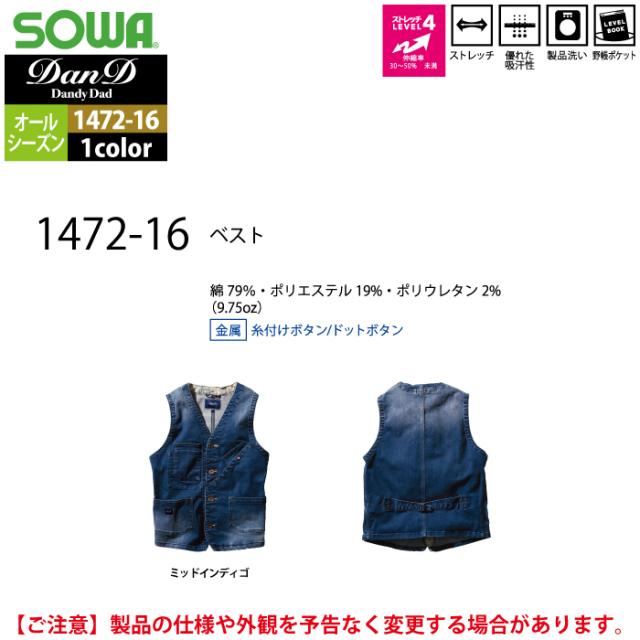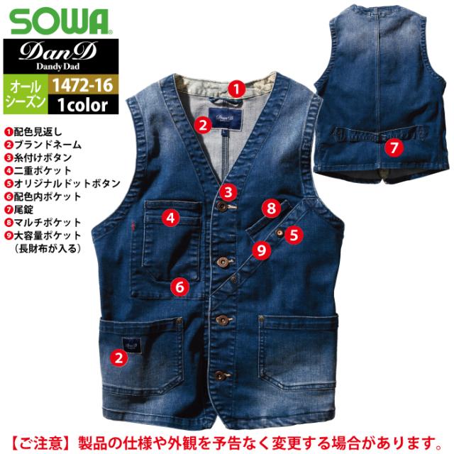 桑和 SOWA 作業服 1472-16 ベスト 3L オールシーズン