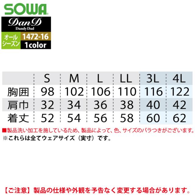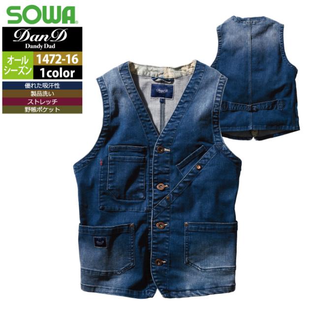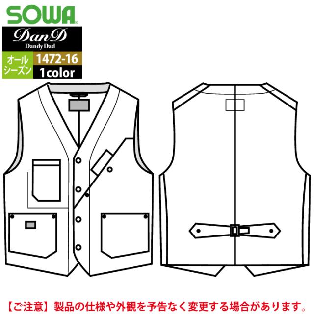 桑和 SOWA 作業服 1472-16 ベスト 4L オールシーズン