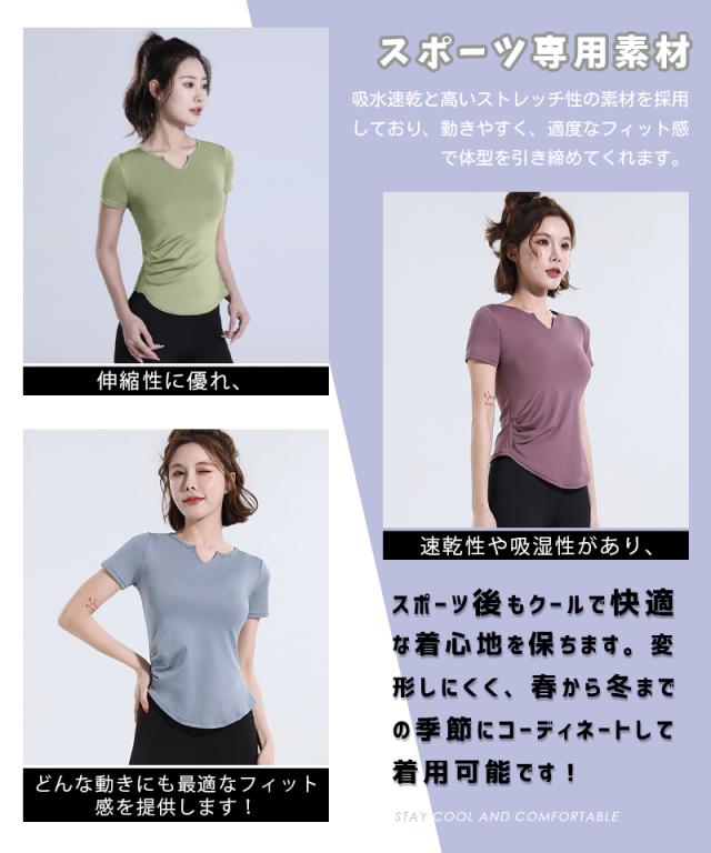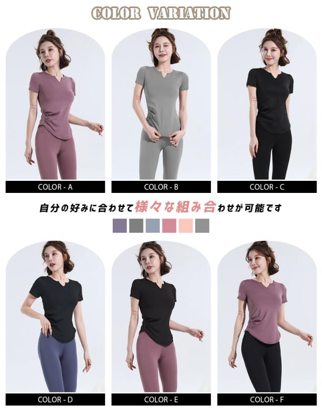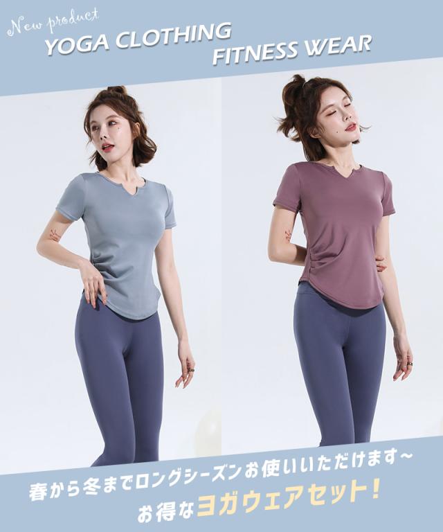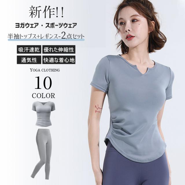 【2点セット】スポーツウェア レディース ヨガウェア ジャージ セット 半袖トップス+レギンス フィットネスウエア レディース 上下セット トレーニングウェア アクティブウェア ジャージ 上下セット 速乾 吸汗 ジャージ セット