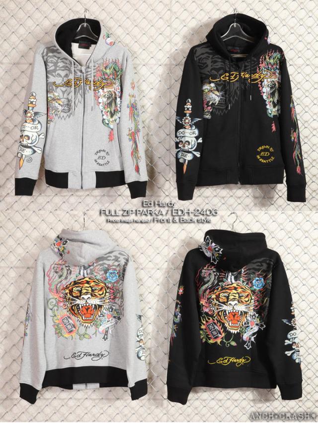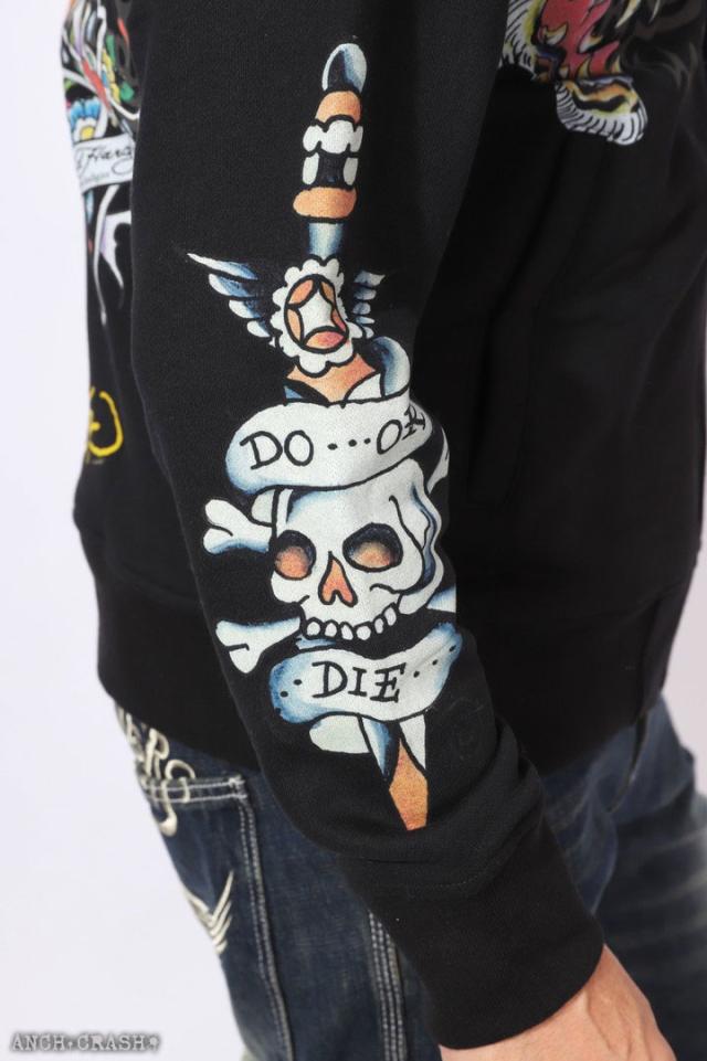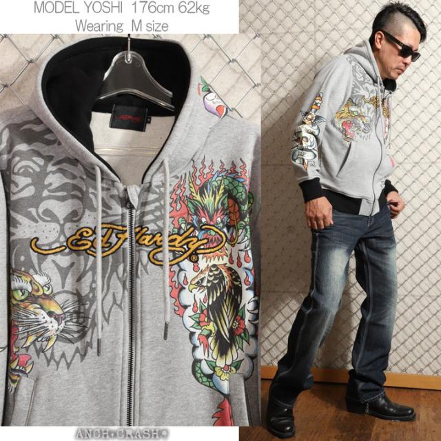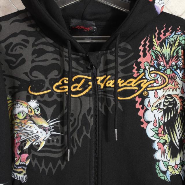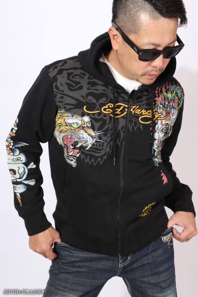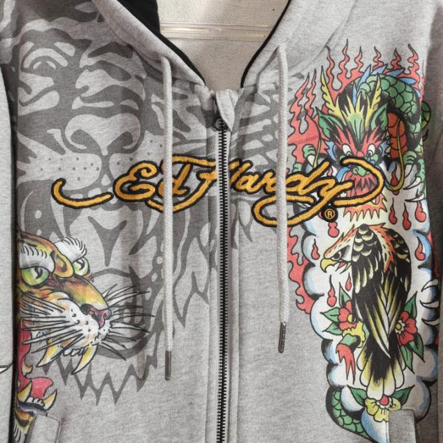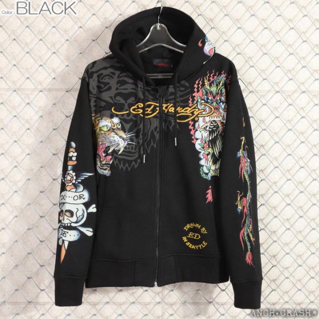 Mサイズのみラスト1点もってけ価格!在庫限りセール SALE 30%off Ed Hardy エドハーディー フルZIPパーカー (EDH-2406)【送料無料】裏毛 刺繍 インクジェット ご奉仕品の為返品交換不可