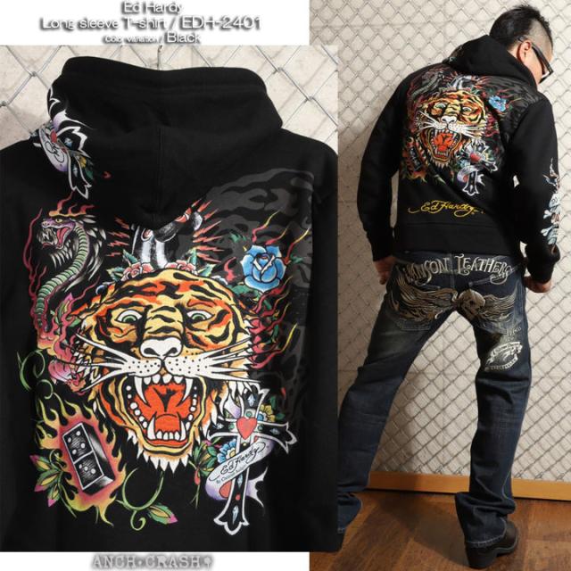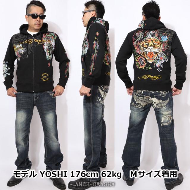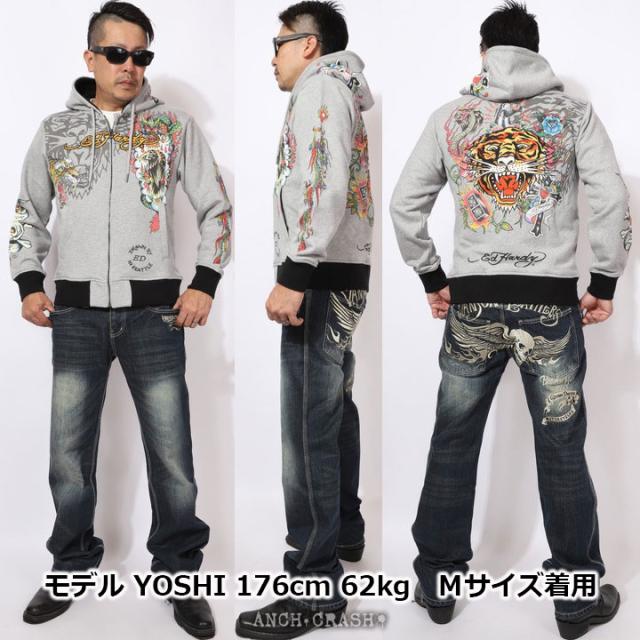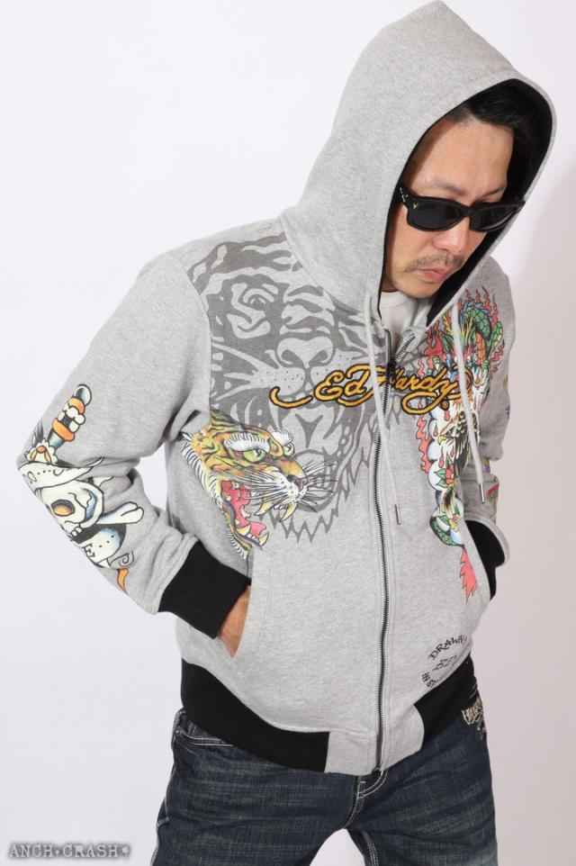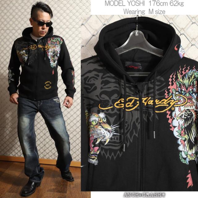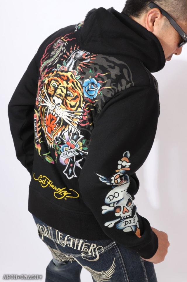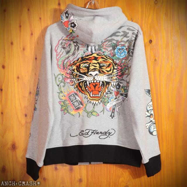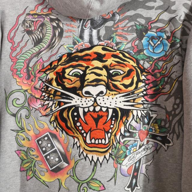 Mサイズのみラスト1点もってけ価格!在庫限りセール SALE 30%off Ed Hardy エドハーディー フルZIPパーカー (EDH-2406)【送料無料】裏毛 刺繍 インクジェット ご奉仕品の為返品交換不可