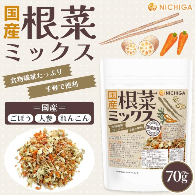 国産根菜ミックス 70g 【メール便専用品】【送料無料】食物繊維たっぷり[ごぼう 人参 れんこん]手軽で便利 契約農家栽培 災害時常備菜に [05] NICHIGA(ニチガ)