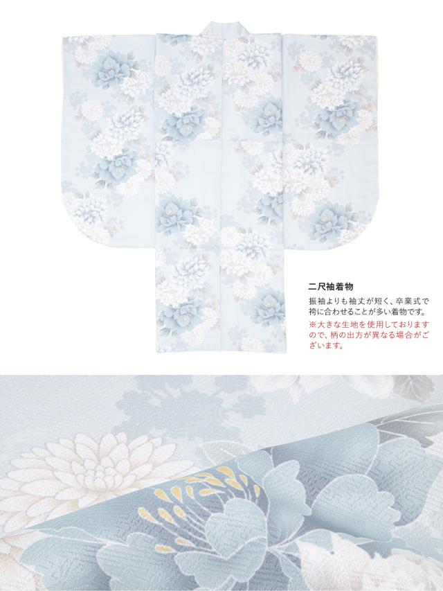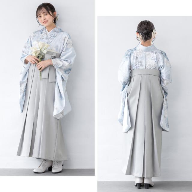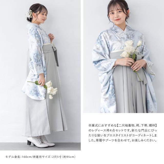 袴セット 卒業式 大学生 小学生 レディース 女の子 セット 青 水色 グレー くすみ フラワー 花柄 和装 着物セット 販売 購入 送料無料