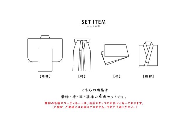 ※こちらの商品は【着物・袴・襦袢・下帯】のセットです。セット内容の一部変更や、それに伴う値引きは承っておりません。