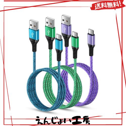 USB Type C ケーブル 【1.8m 3本*3色】 3A急速充電 QC3.0対応 タイプc充電ケーブル 高耐久 ナイロン iPhone 15充電用 USB A to USB C ケ