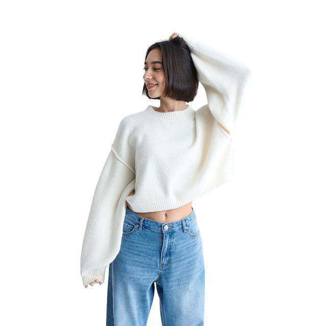 ●たっぷりのボリューム袖と、ワイドシルエット&ジャストウェストのシルエットは、幅広いボトムとバランス良く着こなせます。