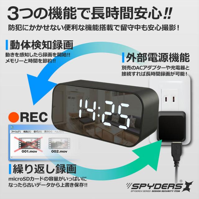 C-505 フルHD 置時計型カメラ 防犯カメラ小型カメラ スパイカメラオンスクエア スパイダーズX