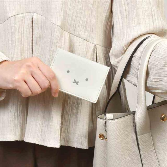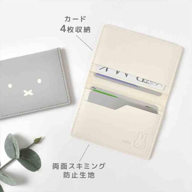 カードケース ミッフィー miffy レディース スキミング 防止 フェイスシリーズ EB483 二つ折り かわいい おしゃれ キャラクター シンプル 薄型 スリム コンパクト 4枚 磁気 電波 遮断 個人情報 保護 パスケース 定期入れ 通勤 通学 大人 女性 うさぎ 雑貨 アイボリー グレー