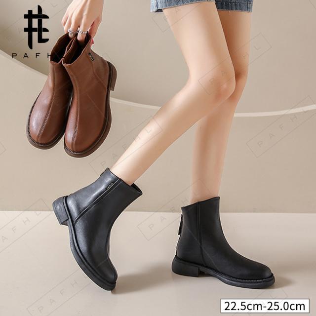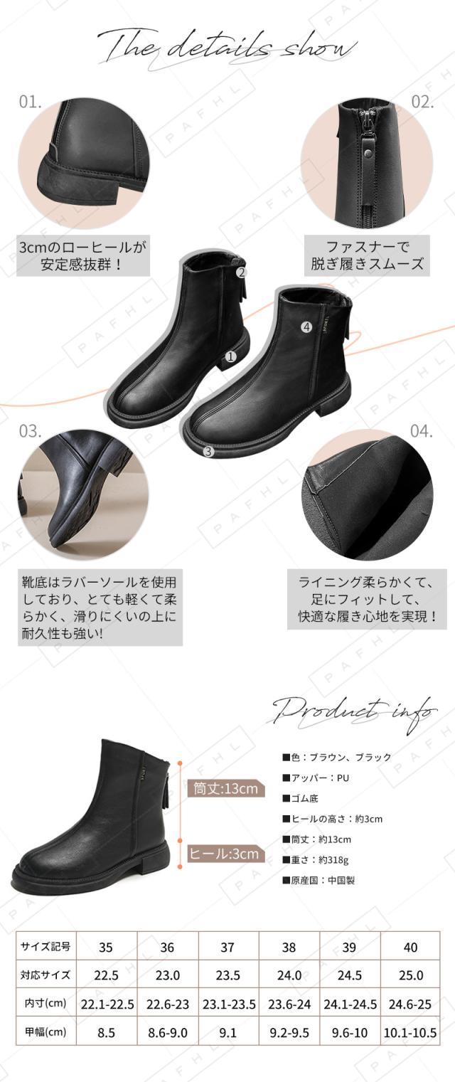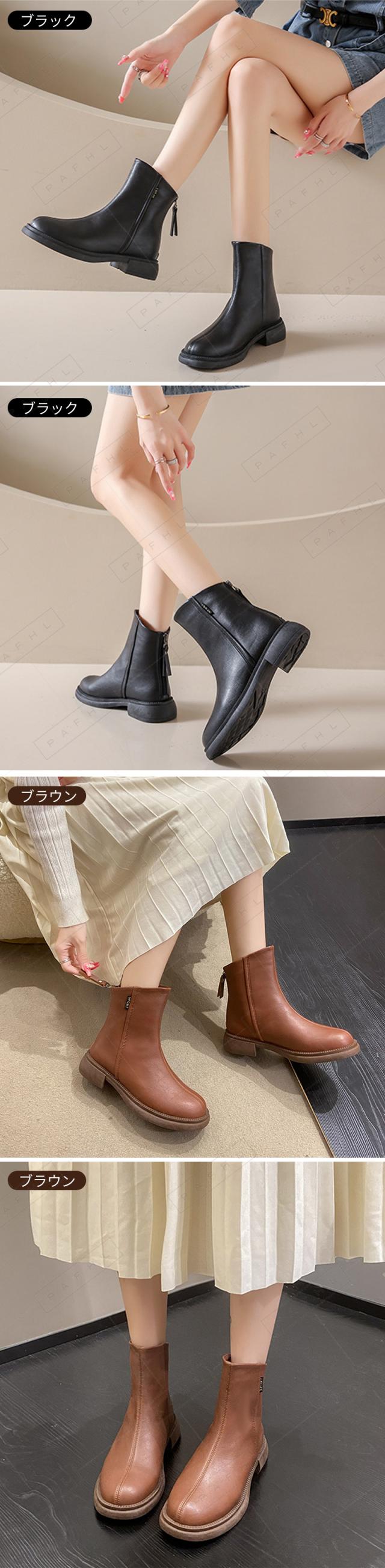 ショートブーツ ブーツ レディース ヒール4cm ローヒール 疲れない 安定感 歩きやすい 滑りにくい 通勤 オフィス シンプル カジュアル ラック ブラウン 22.5cm-25.0cm