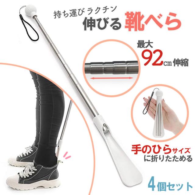 靴べら 靴ベラ 4個セット くつべら シューホーン 長さ調整 靴 おしゃれ 長い コンパクト 便利 収納 耐久性 社会人 プレゼント 贈り物 大学生 就職 進学 お年寄り 妊婦 腰痛 ひざ痛 長い 短い ロング 長い靴べら かがまずに使える 伸びる 伸縮 折りたたみ 手のひらサイズ
