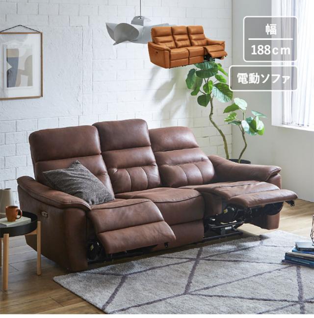 電動ソファ レザー調 3人掛け リクライニングソファ USBポート付き 幅188cm リビングソファ ローソファ 電動 リビング おしゃれ リビングソファ 3人掛け ファミリー ソファ チェア リラックスチェア(代引不可)【送料無料】
