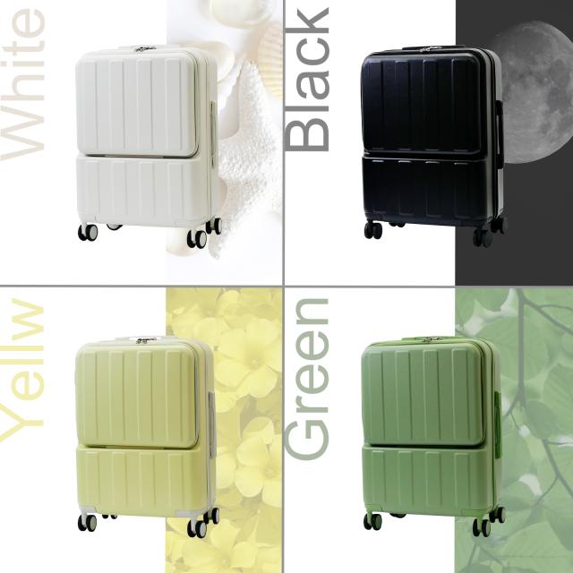 スーツケース mサイズ キャリーケース mサイズ 4泊5日 タイヤカバー フロントオープン 前開き 軽量 フレーム 黒 53L ハード ブラック ホワイト イエロー グリーン USBポート
