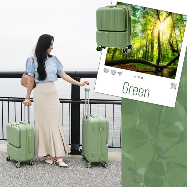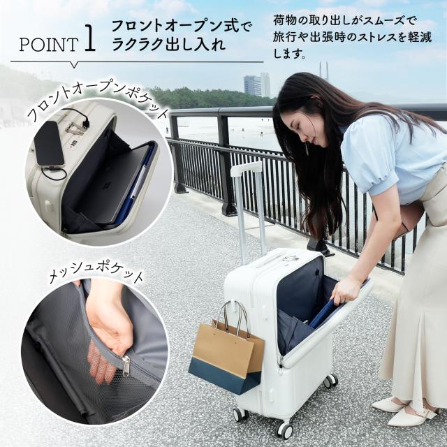 旅行や出張に最適な、USBポート付きフロントオープンカバーキャリーケース。