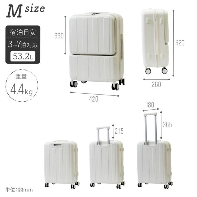 スーツケース キャリーケース キャリーバッグ Mサイズ 53L 前開き