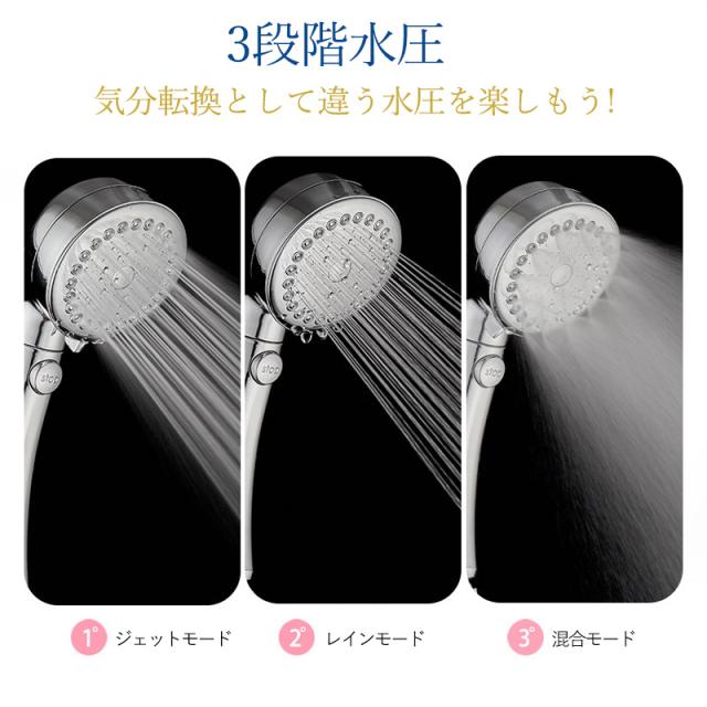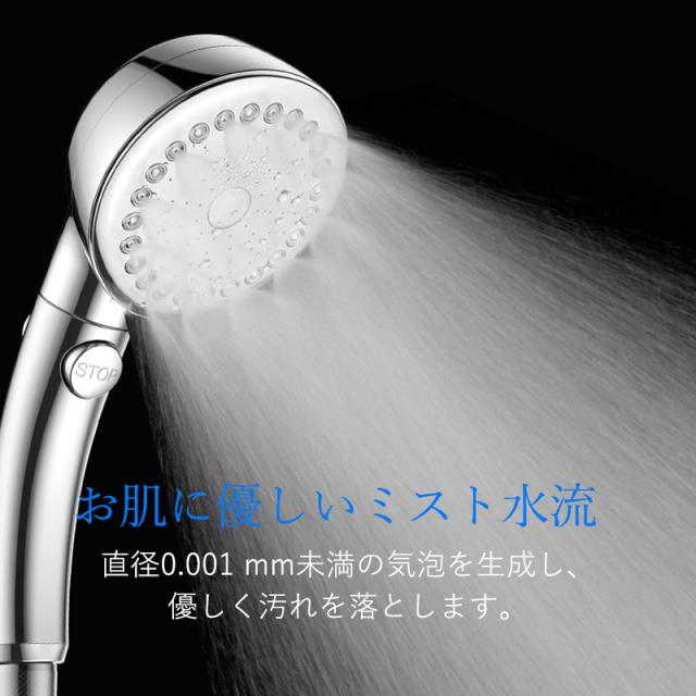 シャワーヘッド 節水 3段階モード ミスト マイクロナノバブル シャワー 多機能 増圧 肌ケア 高洗浄力 汚れ除去 美髪美肌 取付