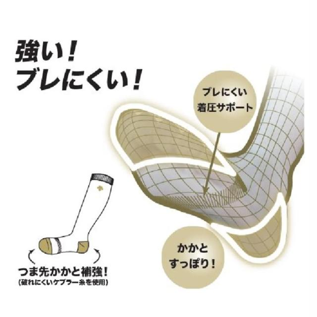 前足部へのサポートと爪先部をアップ仕様にし、踏ん張り易さと破れにくさを改善した野球用カラーソックスです。