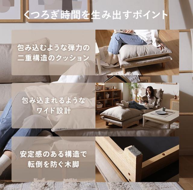 オットマン クッション付き 日本製 座面高30cm 木脚 天然木 1人掛け ワイドサイズ おしゃれ フットレスト コーデュロイ ダリアン ダブルクッション ソファ 椅子 a1427 73×72×46cm リビング ソファ