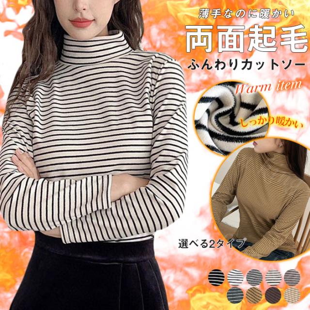 <1点1,190円!2点購入&クーポンで>カットソー Tシャツ 秋冬 微起毛 裏起毛 ハイネック レディース 秋冬 春新作 送料無料 トップス あったか 保温 暖かい 長袖 インナー ストレッチ 柔らか コーデ レイヤード あったか ブラウス 入学式 入園式