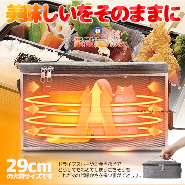 保温でいつも出来立てを楽しめる♪新機能!デジタル表示で温度を確認できる「お弁当袋ランチバッグ2025」が登場!ドライブスルーやお弁当などが冷めてしまうと美味しさが半減…これがあれば温かさを保つことが可能ですお弁当だけでなく、缶コーヒーなどの飲み物を入れていつでも温かさを維持。●USB加熱式●デジタル表示で温度を確認●保温温度調節可能●防水生地【商品サイズ】:25x18x10cm【商品重量】:221g送料無料