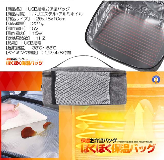 5個セット 保温バッグ 温度表示 液晶 3段階 温度調節 お弁当 USB給電式 保温 58度まで保温 SHOKUBAG