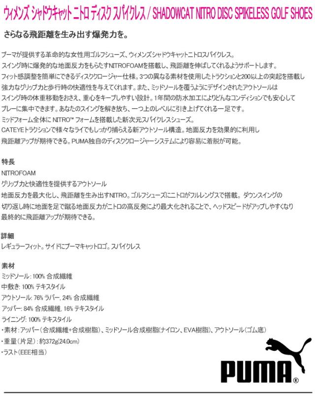 プーマ ゴルフ シャドウキャット ニトロ ディスク スパイクレス ウィメンズ ゴルフシューズ 310833 「PUMA GOLF SHADOWCAT NITRO DISC SPIKELESS GOLF SHOES」 2024年春夏モデル日本正規品
