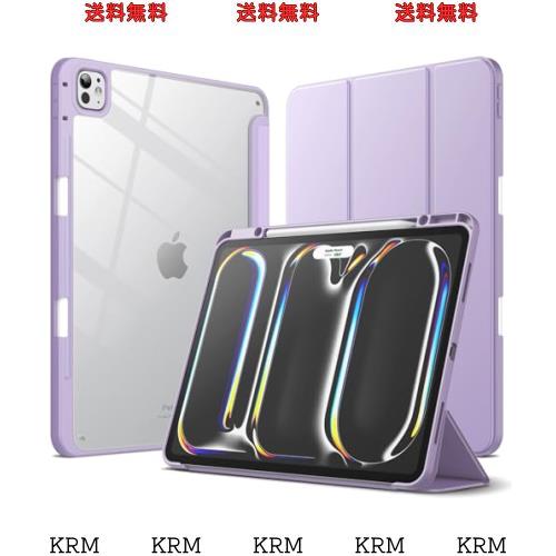 JEDirect iPad Pro 13インチ M4(2024)用 ケース Pencilホルダー付き 透明バックカバー スリムスタンド 衝撃吸収 タブレットカバー オートウェイク/スリープ機能
