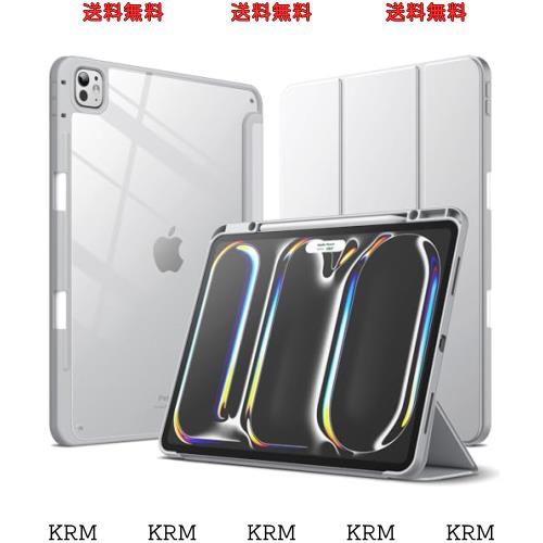 JEDirect iPad Pro 13インチ M4(2024)用 ケース Pencilホルダー付き 透明バックカバー スリムスタンド 衝撃吸収 タブレットカバー オートウェイク/スリープ機能