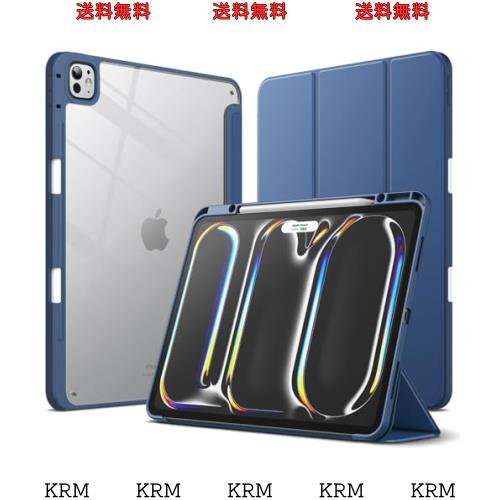 JEDirect iPad Pro 13インチ M4(2024)用 ケース Pencilホルダー付き 透明バックカバー スリムスタンド 衝撃吸収 タブレットカバー オートウェイク/スリープ機能