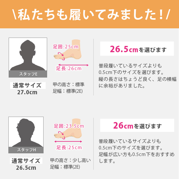甲高、幅広の方→「0.5cm小さめ」