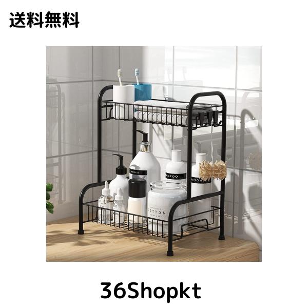 省スペース:下段と上段がある2段のシャンプラックは、小物が掛けられる便利なフック3つ付きます。下段と上段の間の高さが十分あるんのでシャンプーボトルや洗面用具が取り出しやすいです。 商品の落下を防ぐためにエッジが高くなっています。