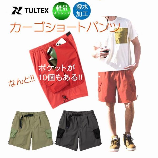 【商品の説明】ポケットの数がなんと10個もある「TULTEX(タルテックス)」カーゴポケットショートパンツ!!手ぶらを叶える大容量ポケットはアウトドアのあらゆるシーンで多彩な使い方ができます。撥水加工・軽量・ストレッチ等の多機能ショーツでアウトドアやキャンプ・水辺のアクテビティや川遊び、夏fフェス、BBQ、ガーデニングなどで大活躍すること間違いなし!!
