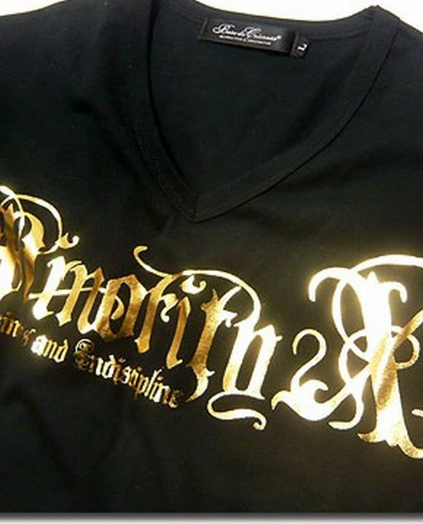 ★ラグジュアリーな金箔プリントが多数入った悪羅悪羅(オラオラ)系メンズ上下セットアップ半袖VネックTシャツ&ハーフパンツ!パンツはゴムウエストで穿き易く上下ともに日本製で高品質!部屋着からスポーツやジムウェア、ダンサーの衣装にまで使い勝手抜群の夏場に大活躍しそうなセットアップTシャツです!