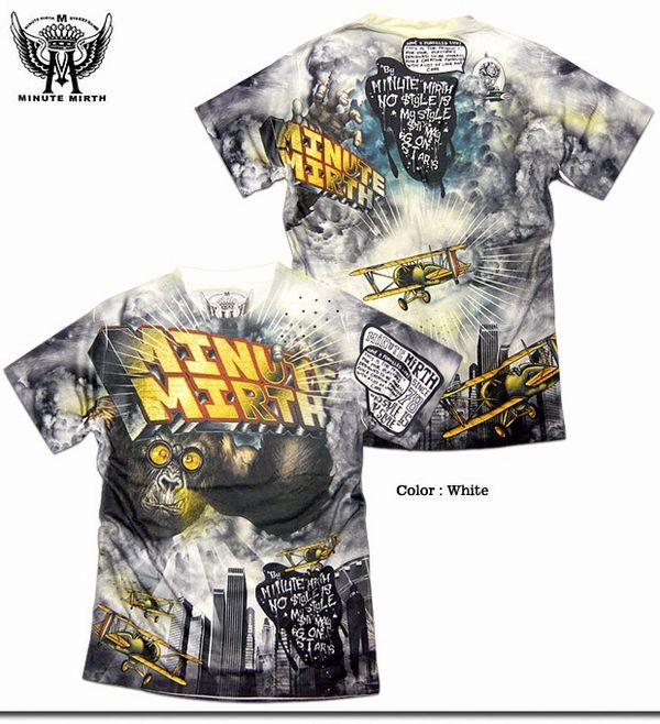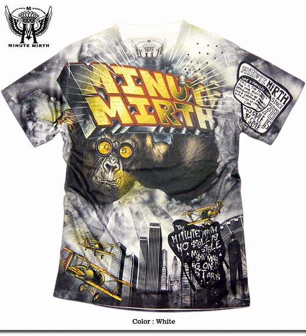 ☆POPでキッチュなグラフィックプリントで人気の『シロイネコ』の別ライン『MINUTE MIRTH』のド迫力なフルカラーインクジェットキングコング総柄プリント半袖メンズTシャツ!前後共にフルカラーでプリントされたド迫力の総柄プリントがインパクト大!ストリートで目立ちたいならコレしか無いです !