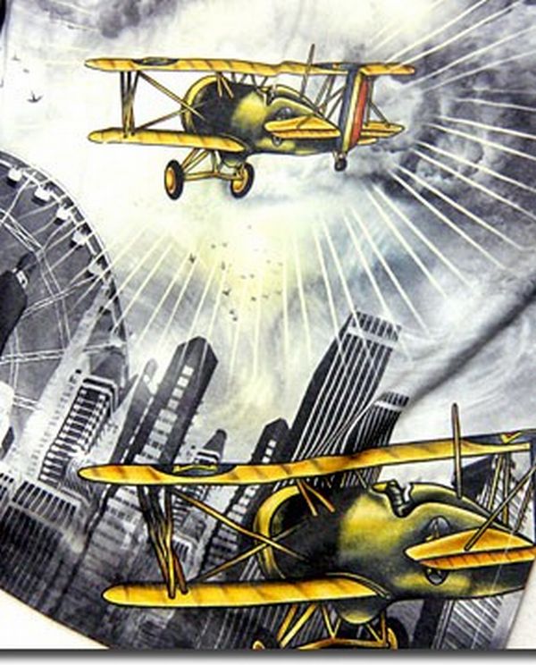 半袖 Tシャツ カットソー トップス メンズファッション フルカラーインクジェット キングコング プロペラ飛行機総柄 プリントTシャツ 【送料無料】