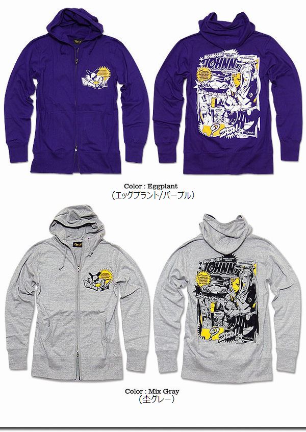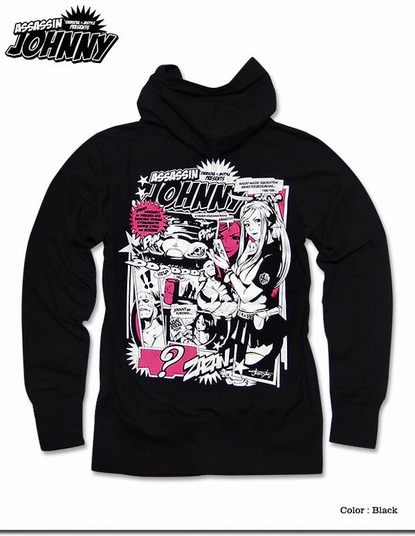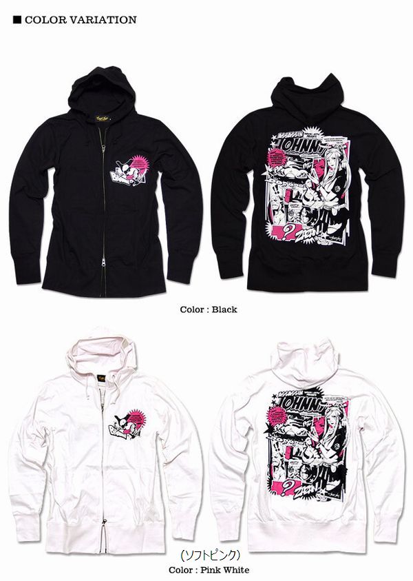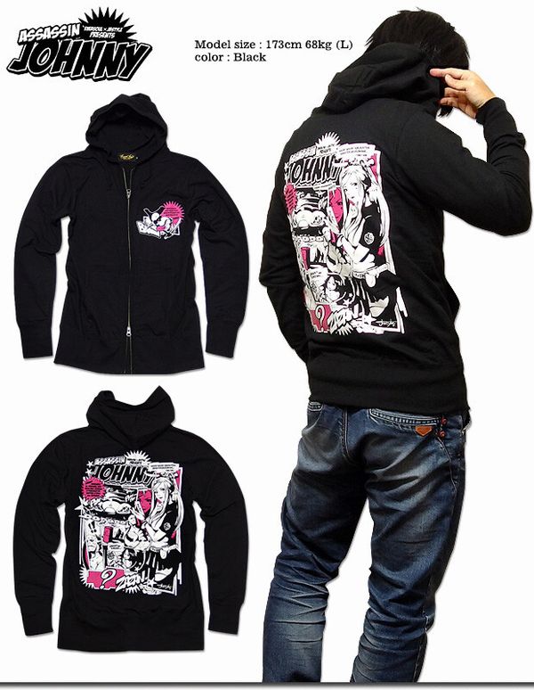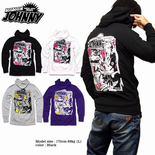 パーカー トップス メンズファッション EVERSOUL 殺し屋ジョニー カッコいい アメコミ風プリント POP 天竺フルジップパーカー 超クール