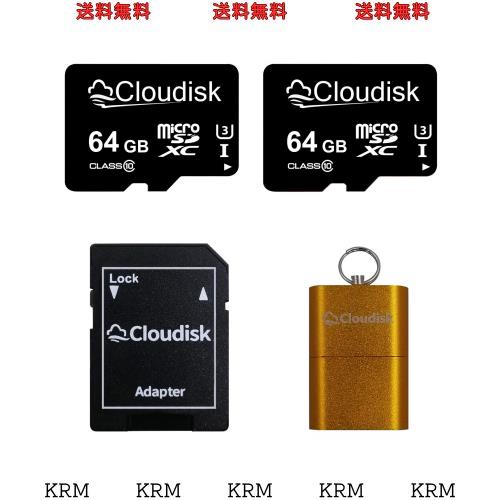 Cloudisk Micro SDカード64 GB(2個セット) フラッシュカードMicro SDXC、SDアダプタとカードリーダー付き、C 10、A 2、U 3、UHS-I(64 GB