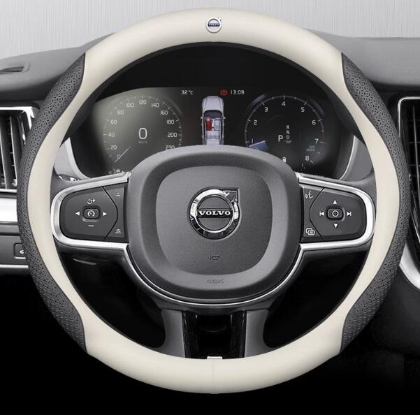 ボルボ VOLVO☆車用 ハンドルカバー ファッショナ ステアリングカバー 滑り止め 吸汗 38cmサイズ O型 ☆ホワイトレザー/ブラック花柄☆
