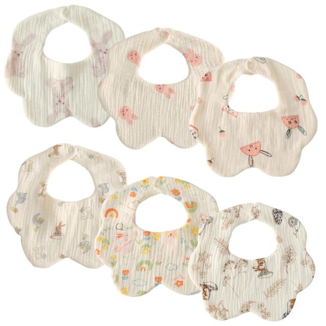 GoUseGo ベビー スタイ 女の子 6枚セット 6重ガーゼ地 ウサギ柄 よだれかけ 赤ちゃん 花びらスタイ 1歳 2歳 3歳 綿 コットン 幼児 新生