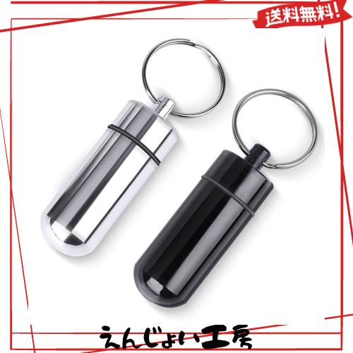 【商品詳細】素材:アルミ合金製 セット内容/2個 色/バラック+シルバー 単品のサイズ:直径1.7センチ*高さ5センチ(キーリングを含めない) 単品の重量/10g ※お薬の種類によって、このケースに適用されない場合もございます。常備薬の大きさを確認してからお使いください。