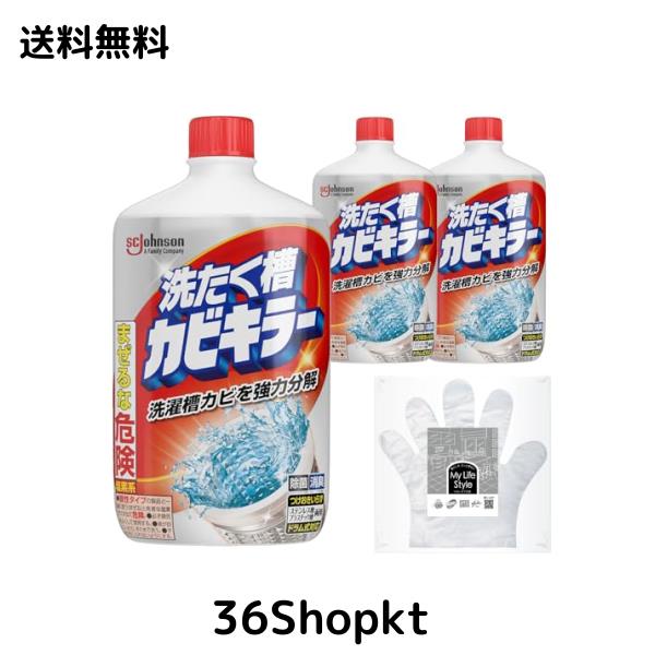 【Amazon.co.jp 限定】 カビキラー 洗濯槽クリーナー 液体 550g×3本 お掃除手袋つき カビ取り 除菌 ドラム式対応 つけおき不要 すくい取