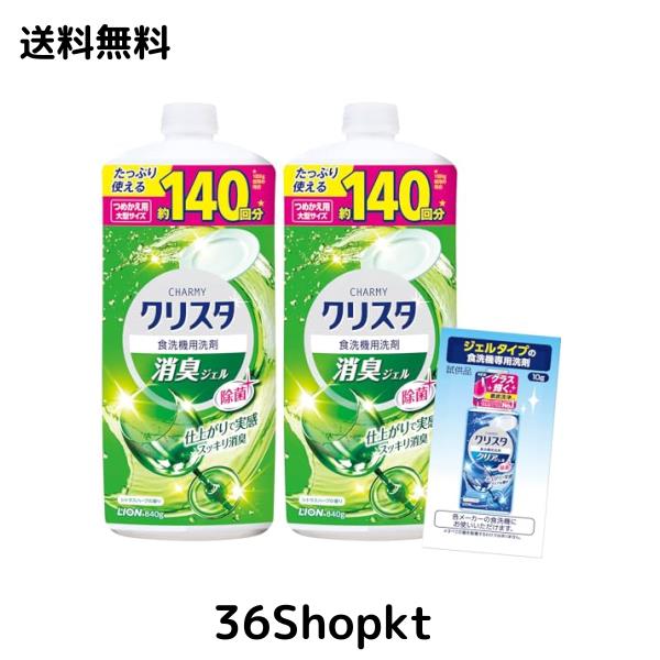 【Amazon.co.jp限定】チャーミー クリスタ 消臭ジェル 仕上がりで実感 スッキリ消臭 食器用 食洗機用 洗剤 詰め替え840g×2個+おまけ付【