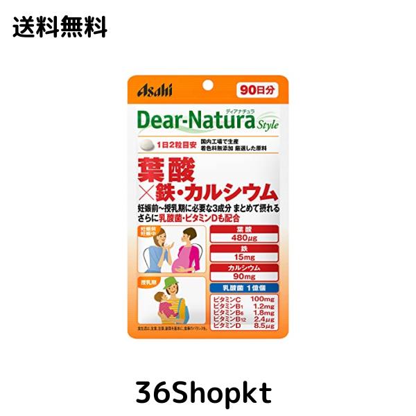 ディアナチュラスタイル 葉酸×鉄・カルシウム 180粒(90日) アサヒ サプリ 1日2粒 国内工場 パウチ 妊娠前 妊娠中 授乳期 乳酸菌